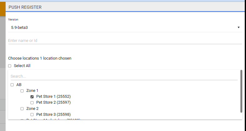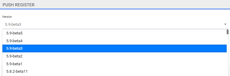 Now, go to the Push Updates tab and select the version you wish to push (e.g., Register 5.9-beta3 - Not the latest version available).