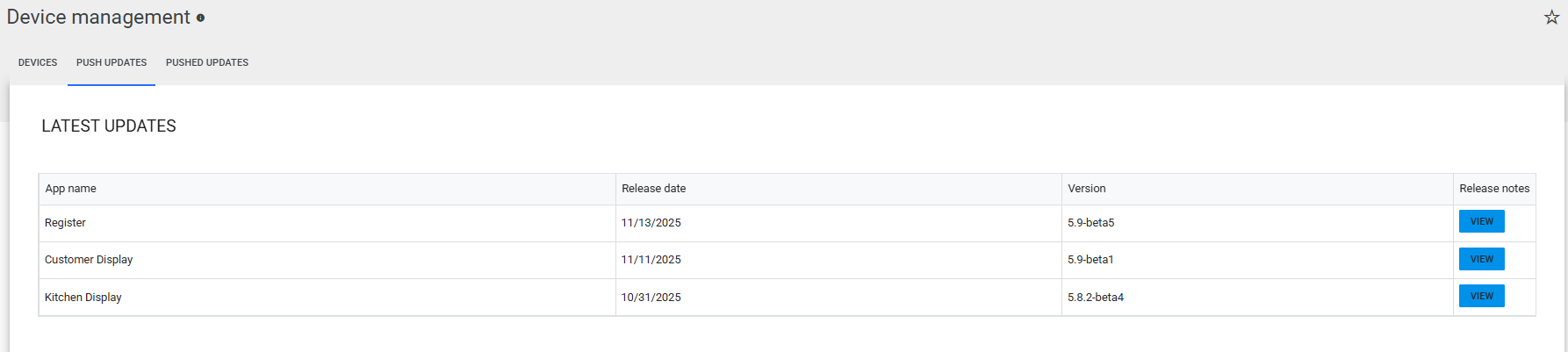 - Push Updates – Allows you to push app updates to selected stores manually.