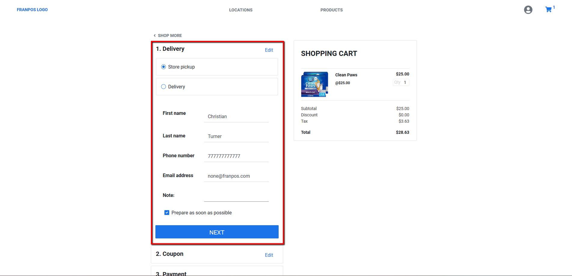 5. Fill out your contact information. In this example we are going to walk you through Store Pickup