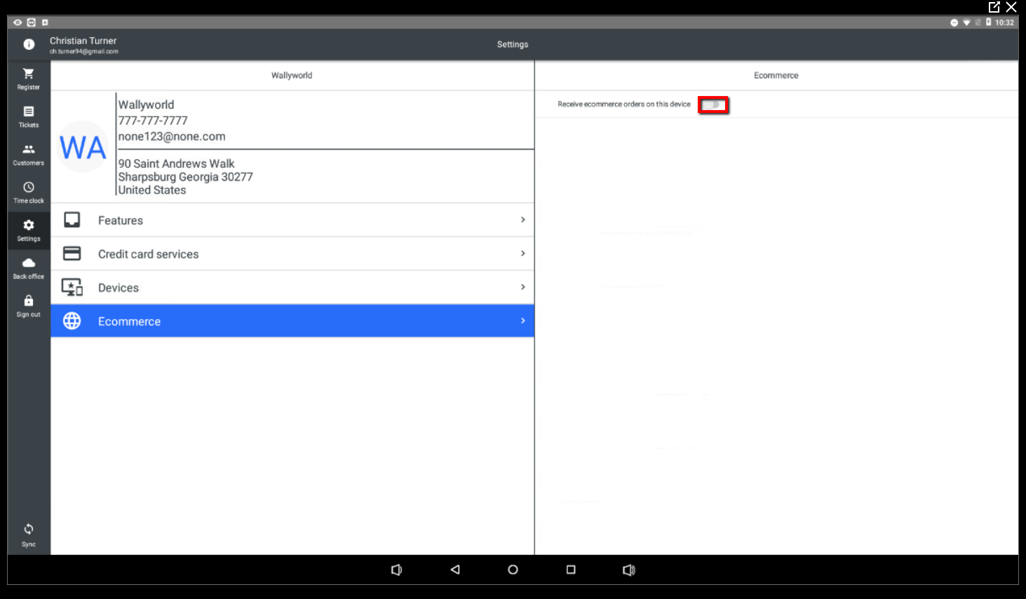 1. Enable Receive ecommerce orders on this device to be notified with online order tickets.