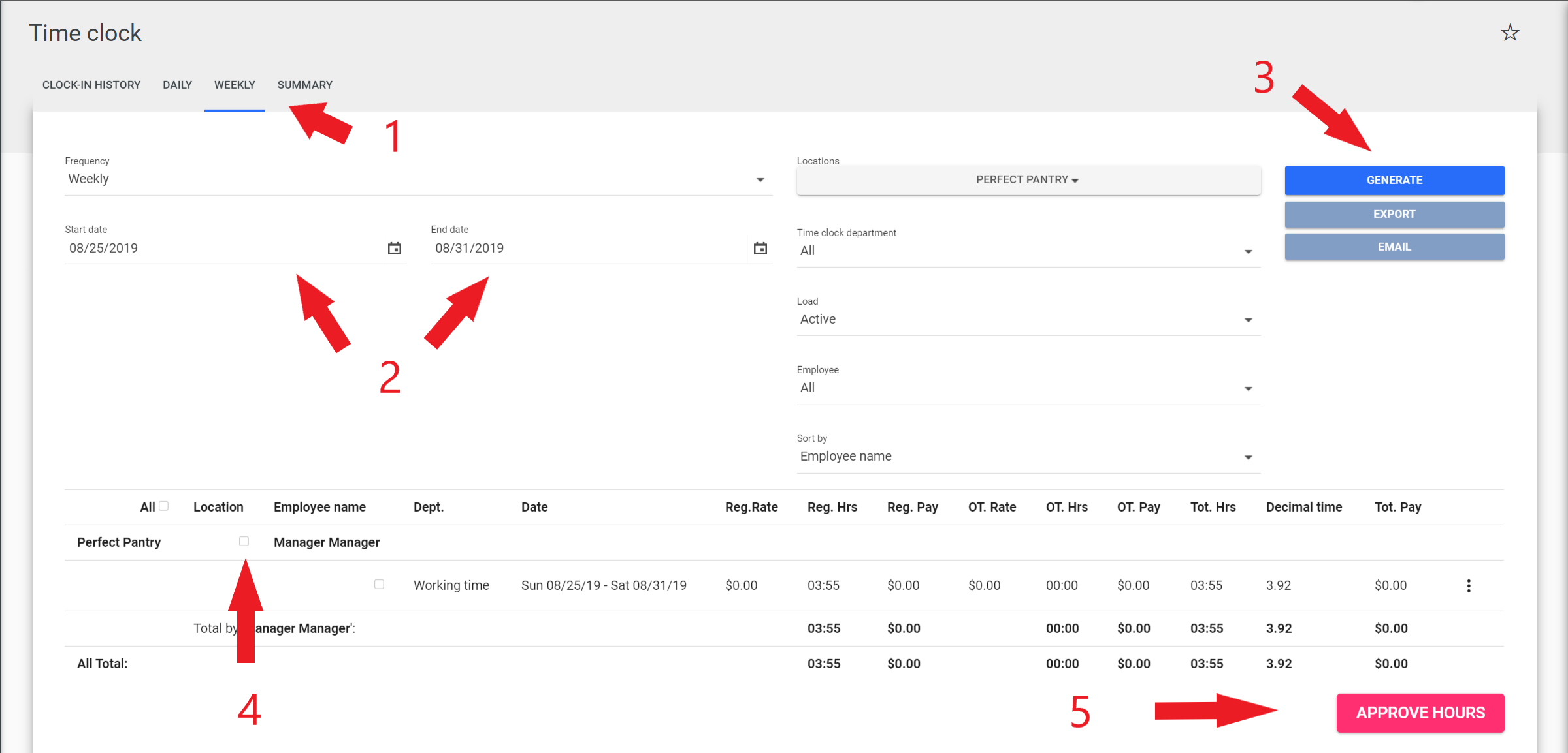 Employee - Time-Clock - Approve Hours