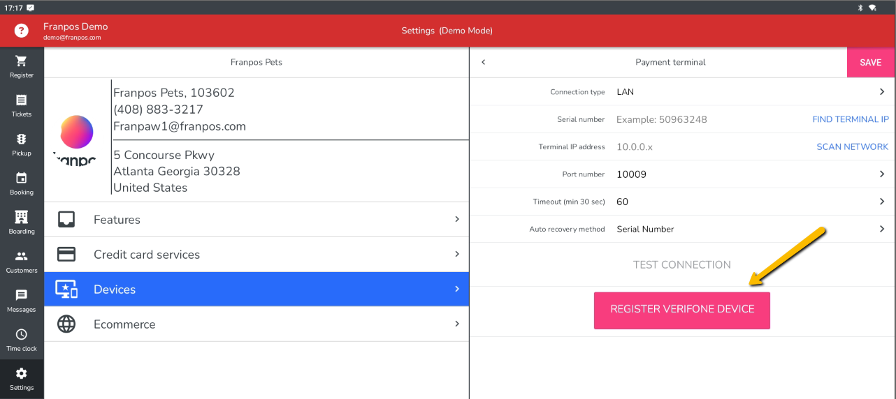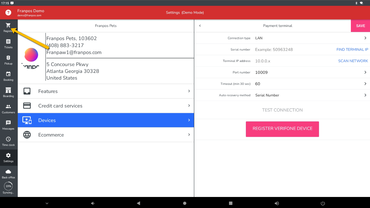 1.2 In the Register app, go to Settings > Devices > Payment Terminal.