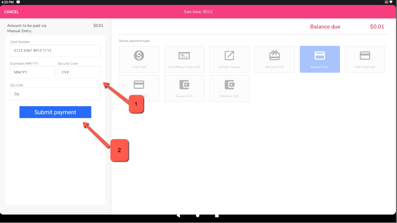 Manual Entry allows customers to make payments over the phone by providing their card details.