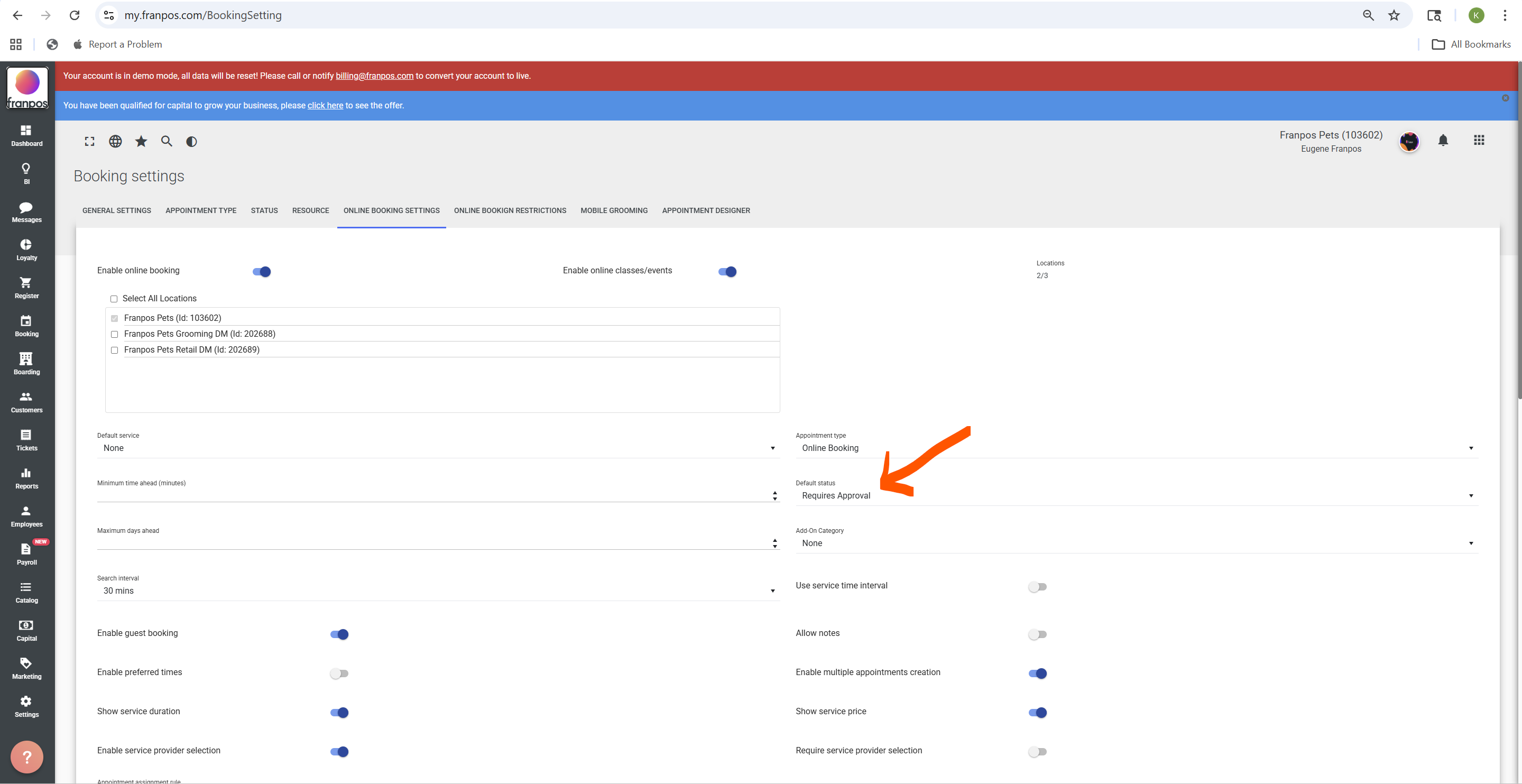 If you want online appointments to be reviewed before confirmation, you can enable this option in the back office under Booking Settings → Online Booking Settings → Deafult Status - Require Approval and Save the Page