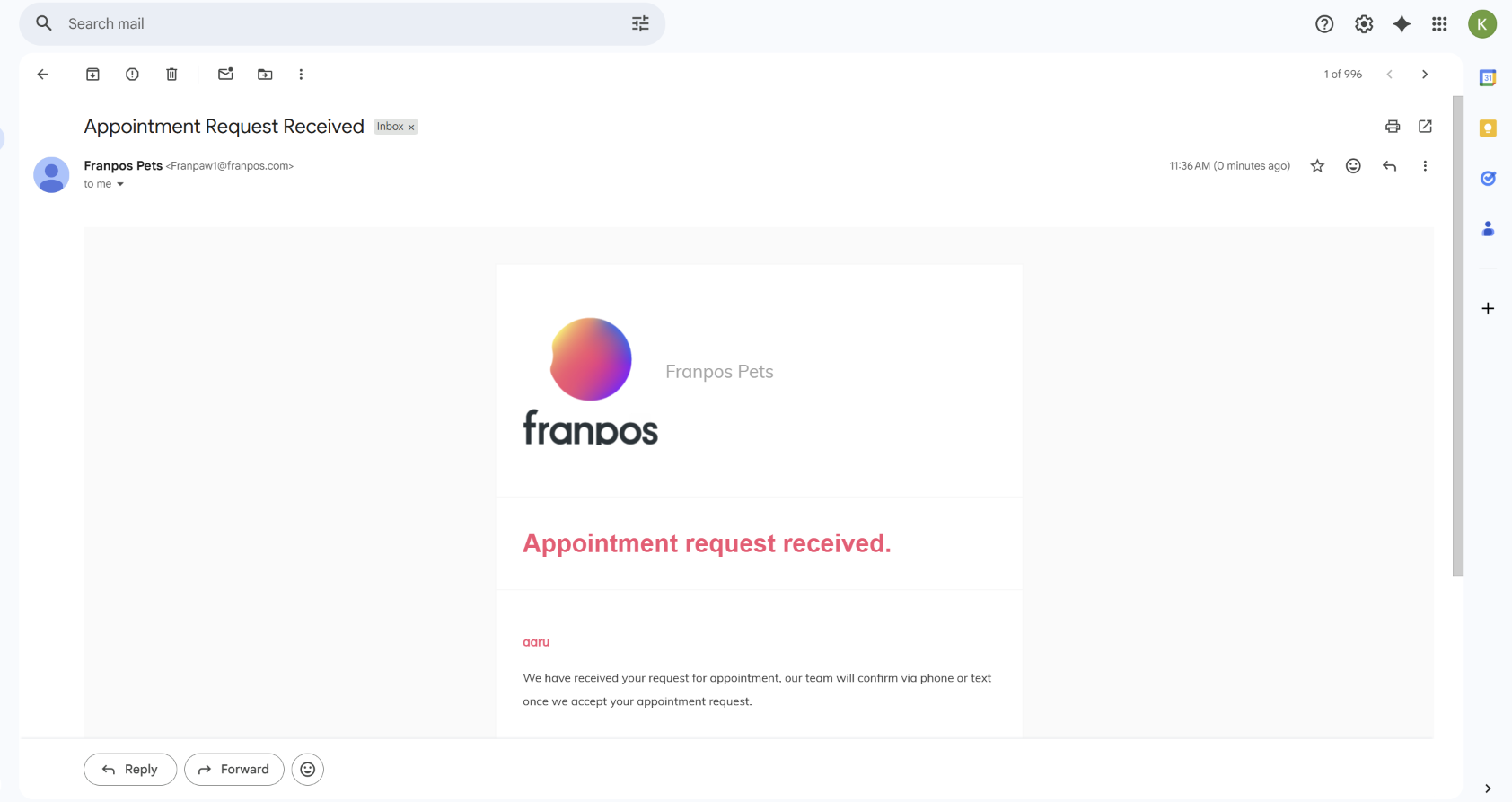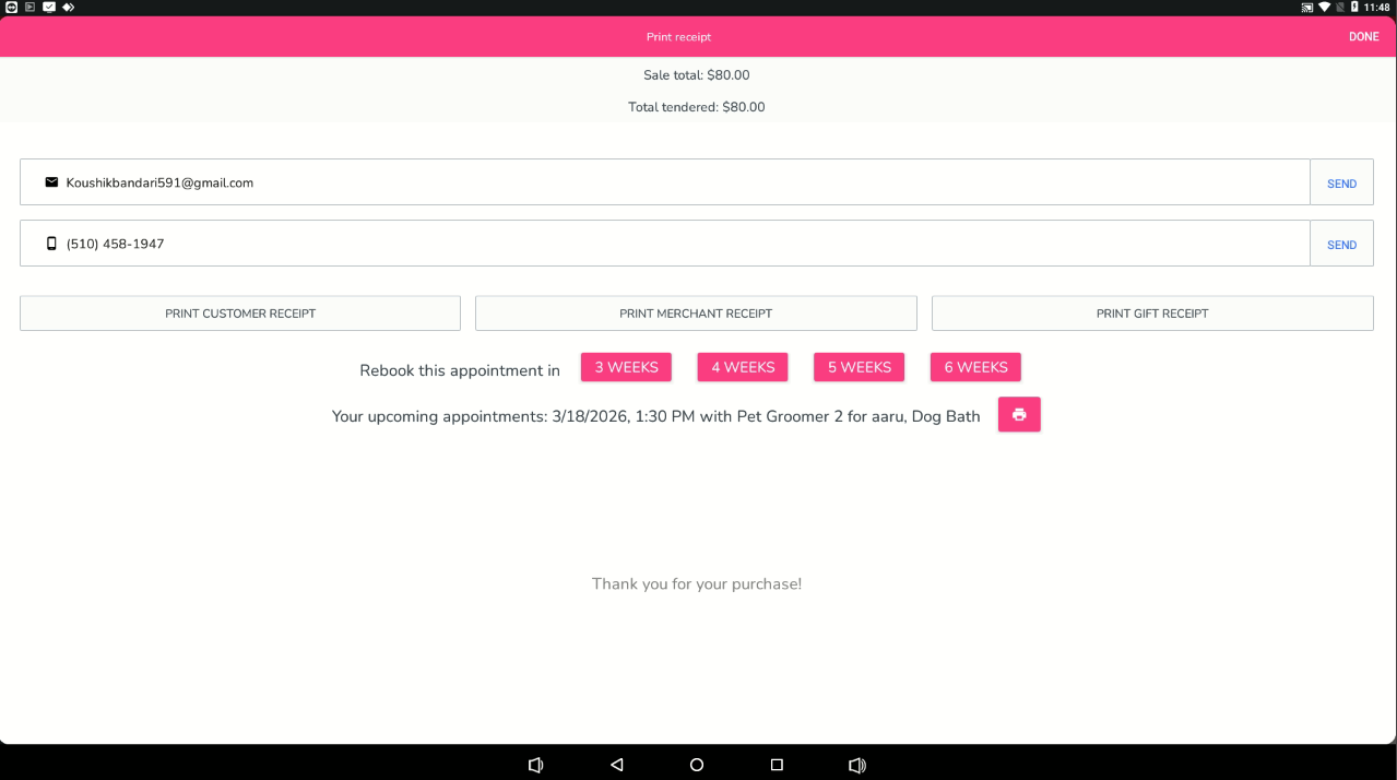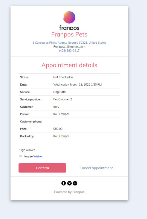 Once the store accepts the online appointment request, the customer will receive an email confirmation. You can also set up a text message confirmation if desired.