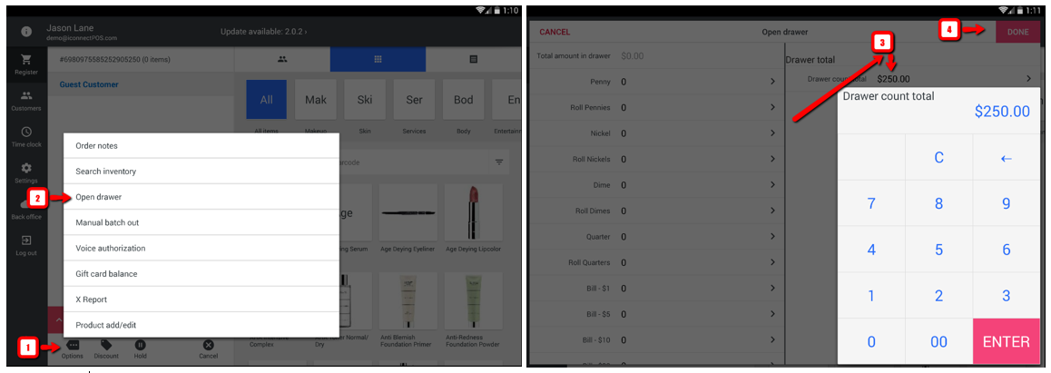 In this training, you will learn how to open a drawer for your day. Pre-prerequisite:- Settings > Company Settings > Enable 'Drawer Count' Select 'Option' tap Press ‘Open Drawer’ Add the amount of dollars you have or enter the amount for your daily ...