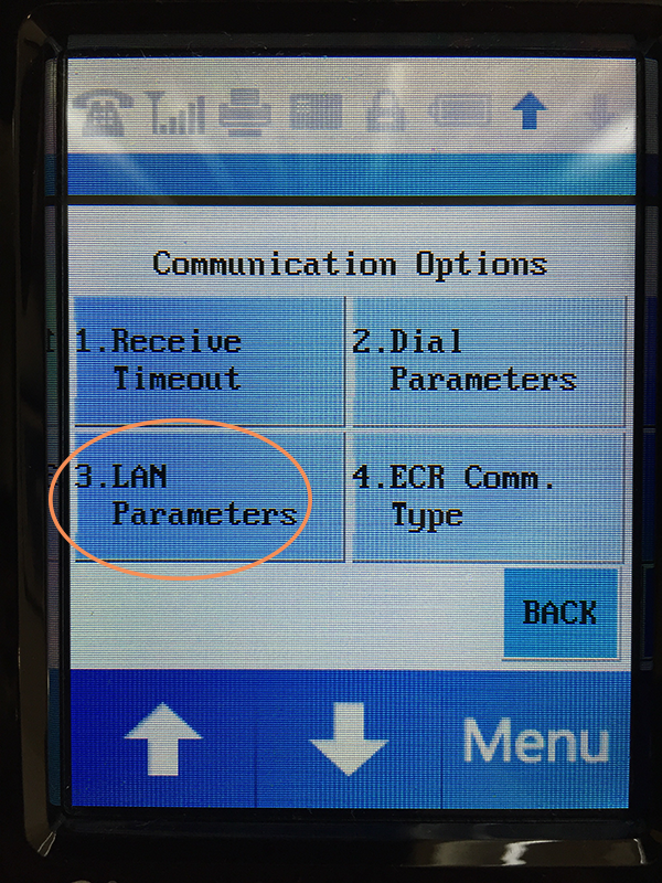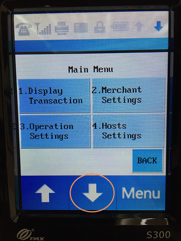To make sure both your PAX device and Franpos Register are on the same subnet, you need to find the IP address of your PAX device. On your PAX device, click the "Menu" button on your PAX S300 (note, you're going to need to know the password to the device to follow these troubleshooting steps, usually it's 1234):