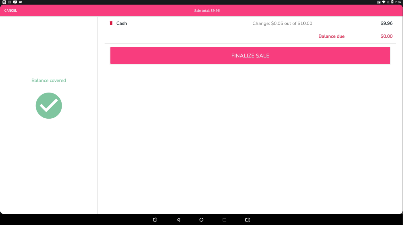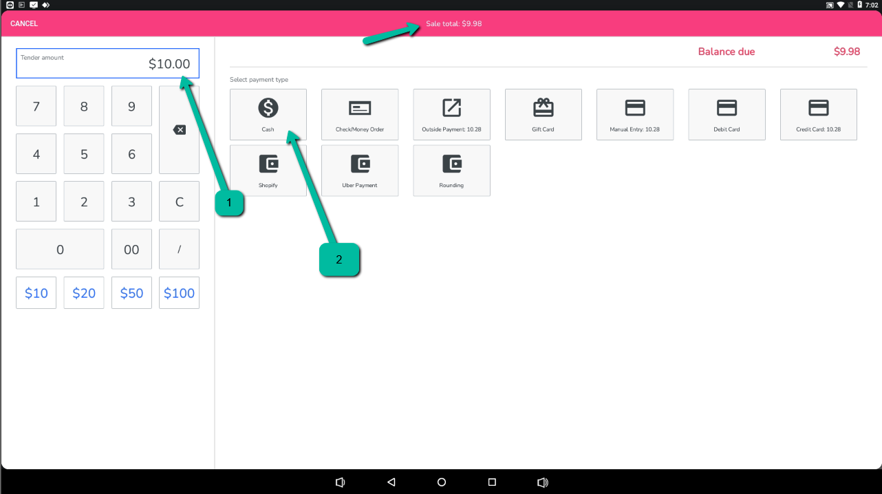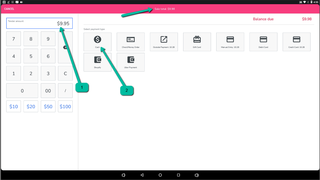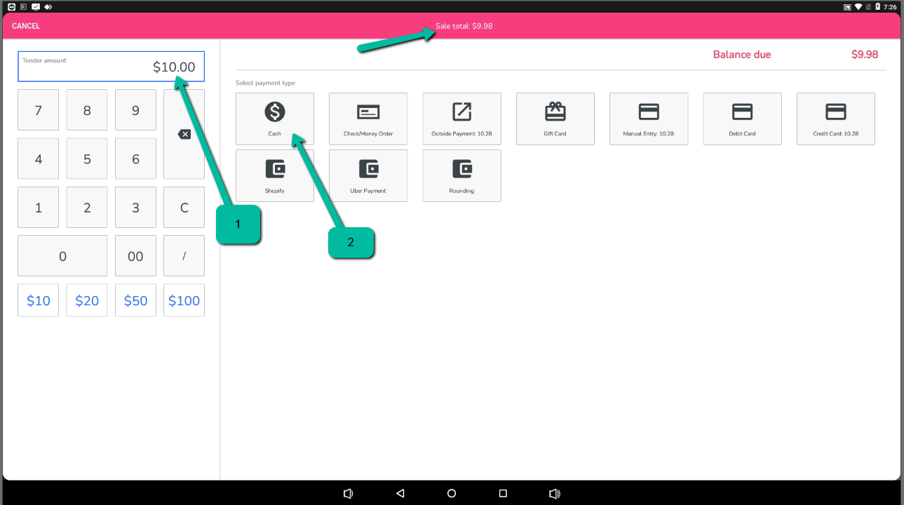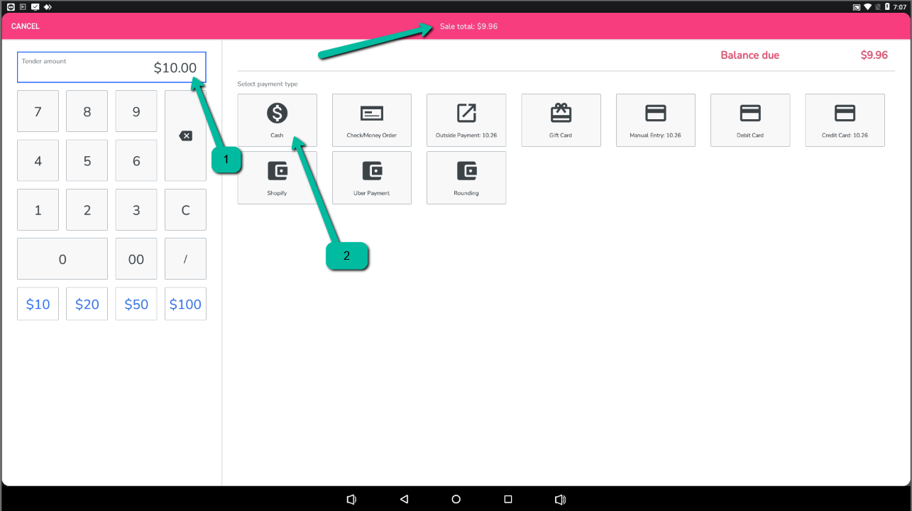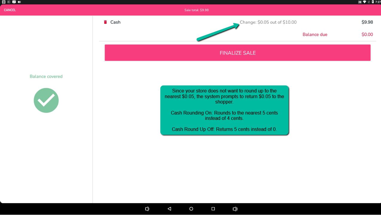 Rounding - This payment method is required when a customer provides less cash than the total transaction amount.