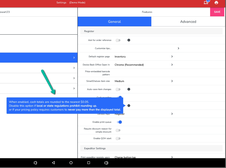 If your State or Local Regulations Prohibit Rounding Up - Disable Cash Round Up Toggle