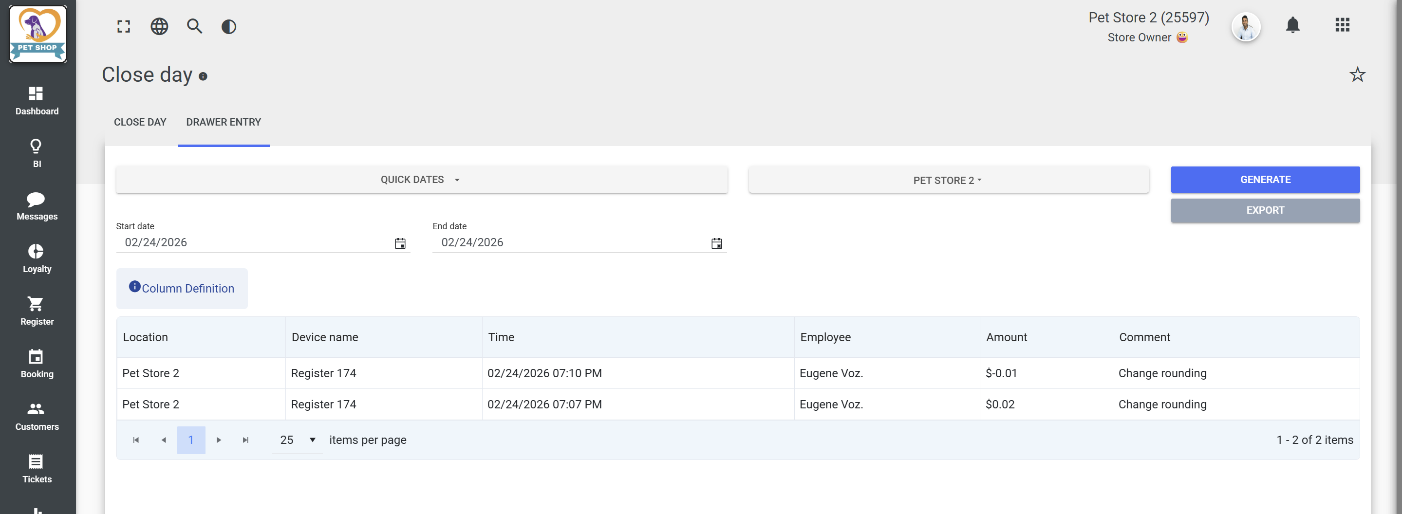 This is how it Reflects in Back Office - Daily Close Out Reporting