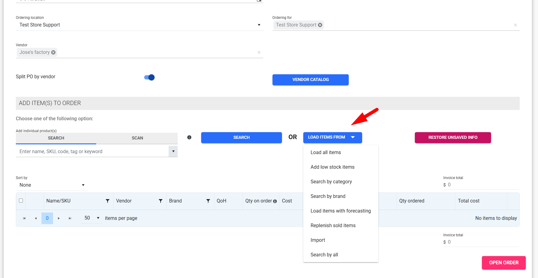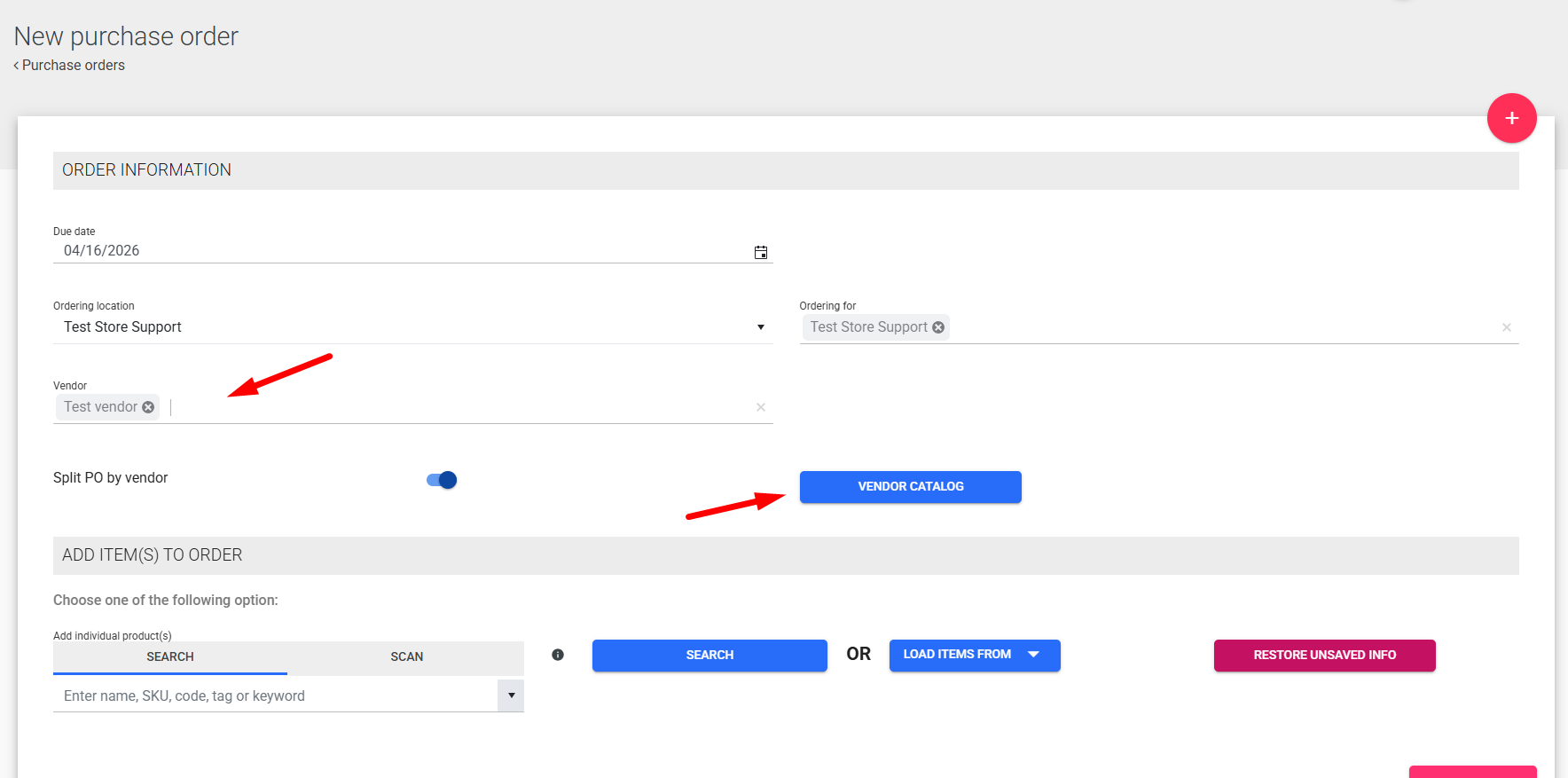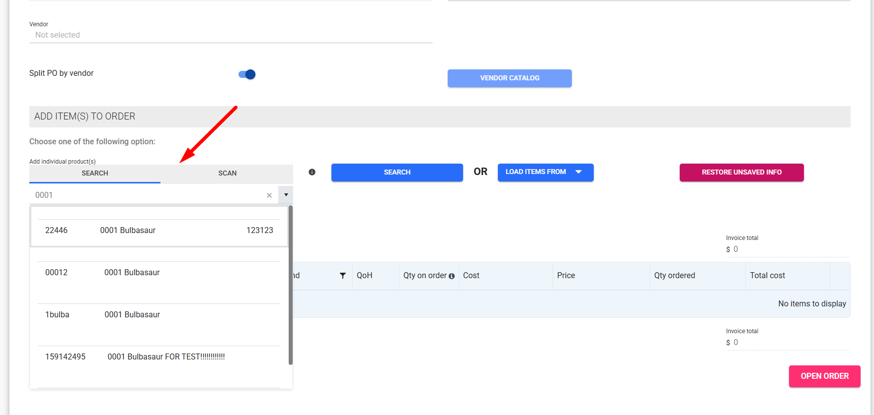 This tool can create and track both purchase orders and stock transfers to other locations. Upon receiving products with this tool, the amount will be added to on-hand quantity.