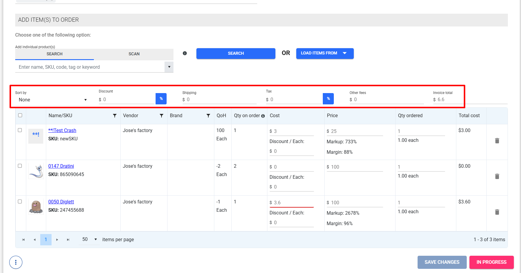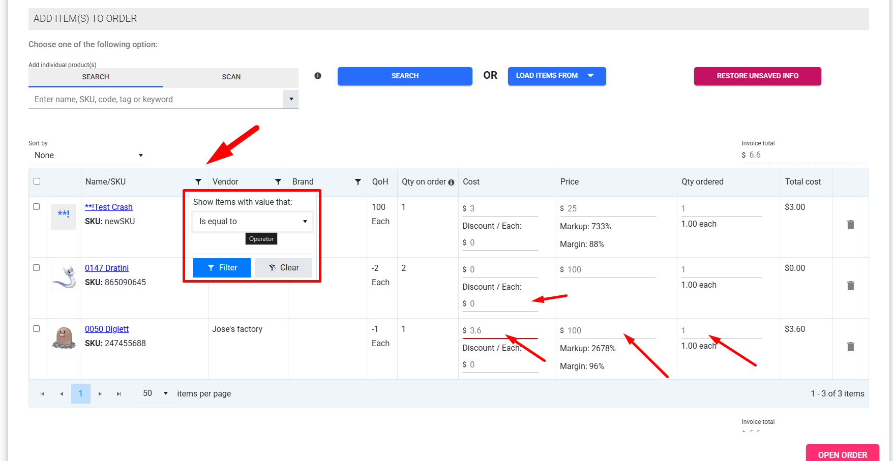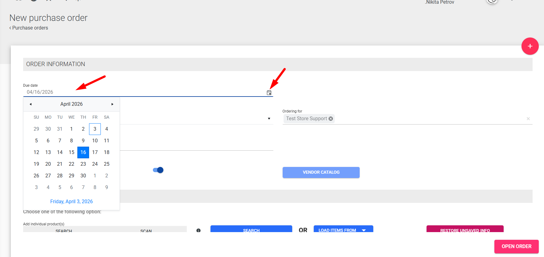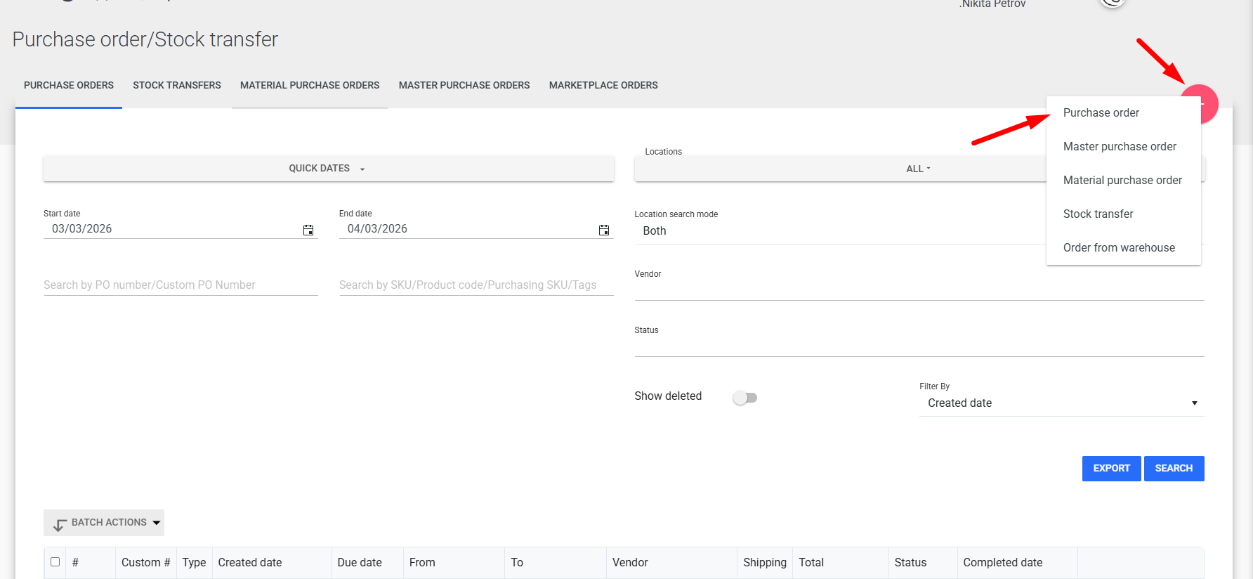 This tool can create and track both purchase orders and stock transfers to other locations. Upon receiving products with this tool, the amount will be added to on-hand quantity.