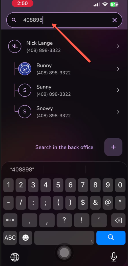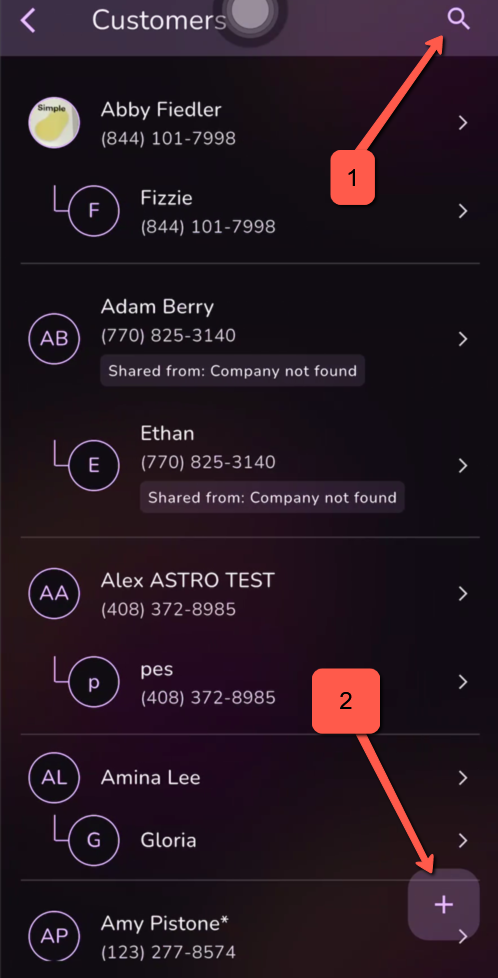 In order to search for an existing Customer Profile please use the search field. Type in the Phone number, Name etc