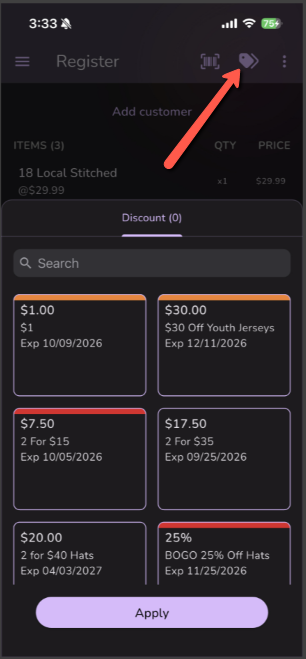 In order to Apply a Discount Please click on the button like in picture below.