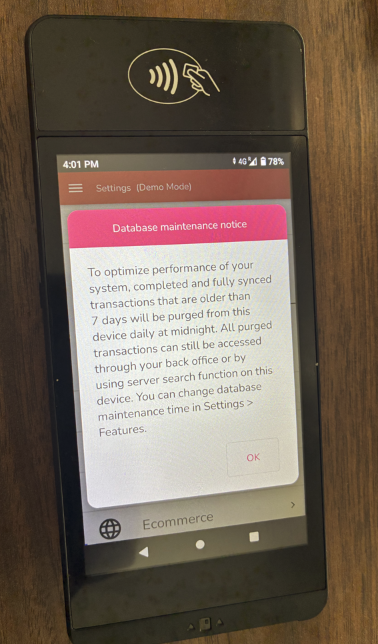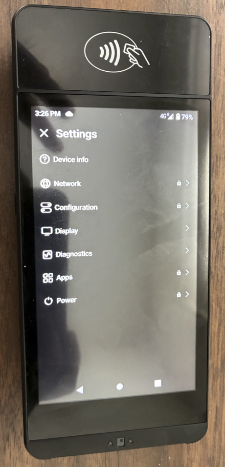 By default, the device comes with only two applications: Settings & Transactions