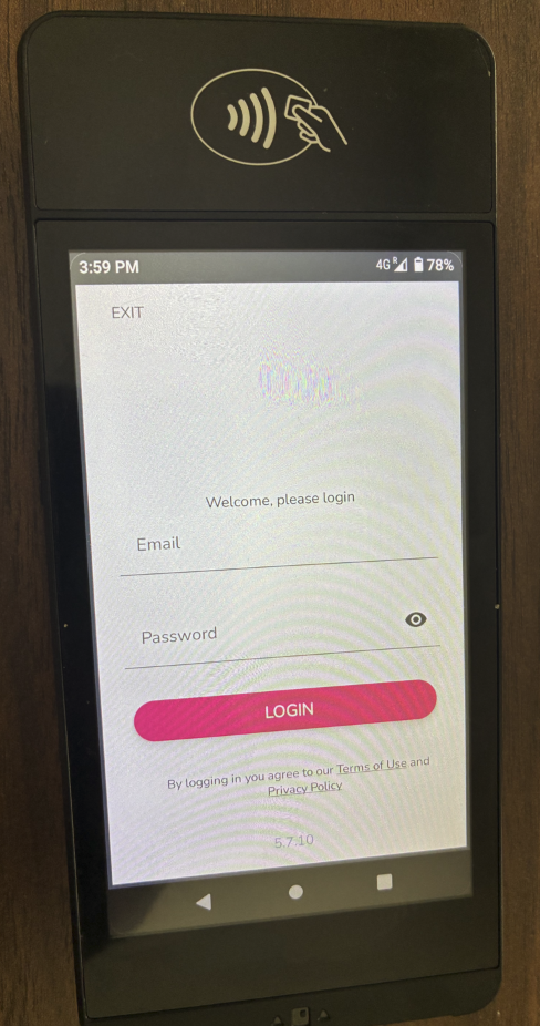 Once the device has downloaded the Register application, open it and enter your Franpos login credentials to sign in.