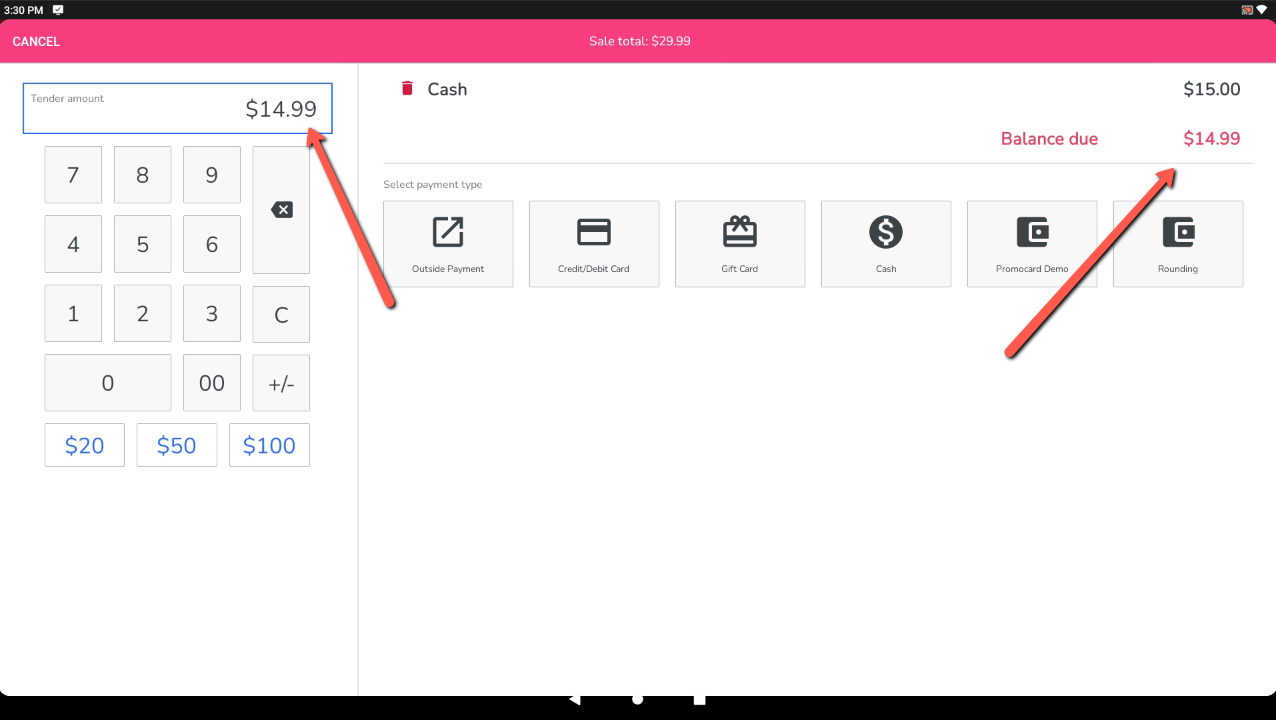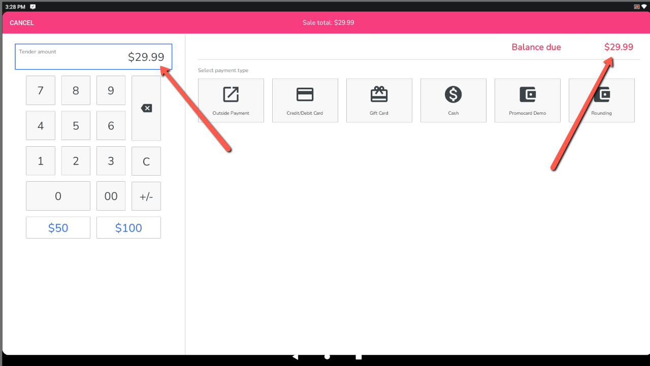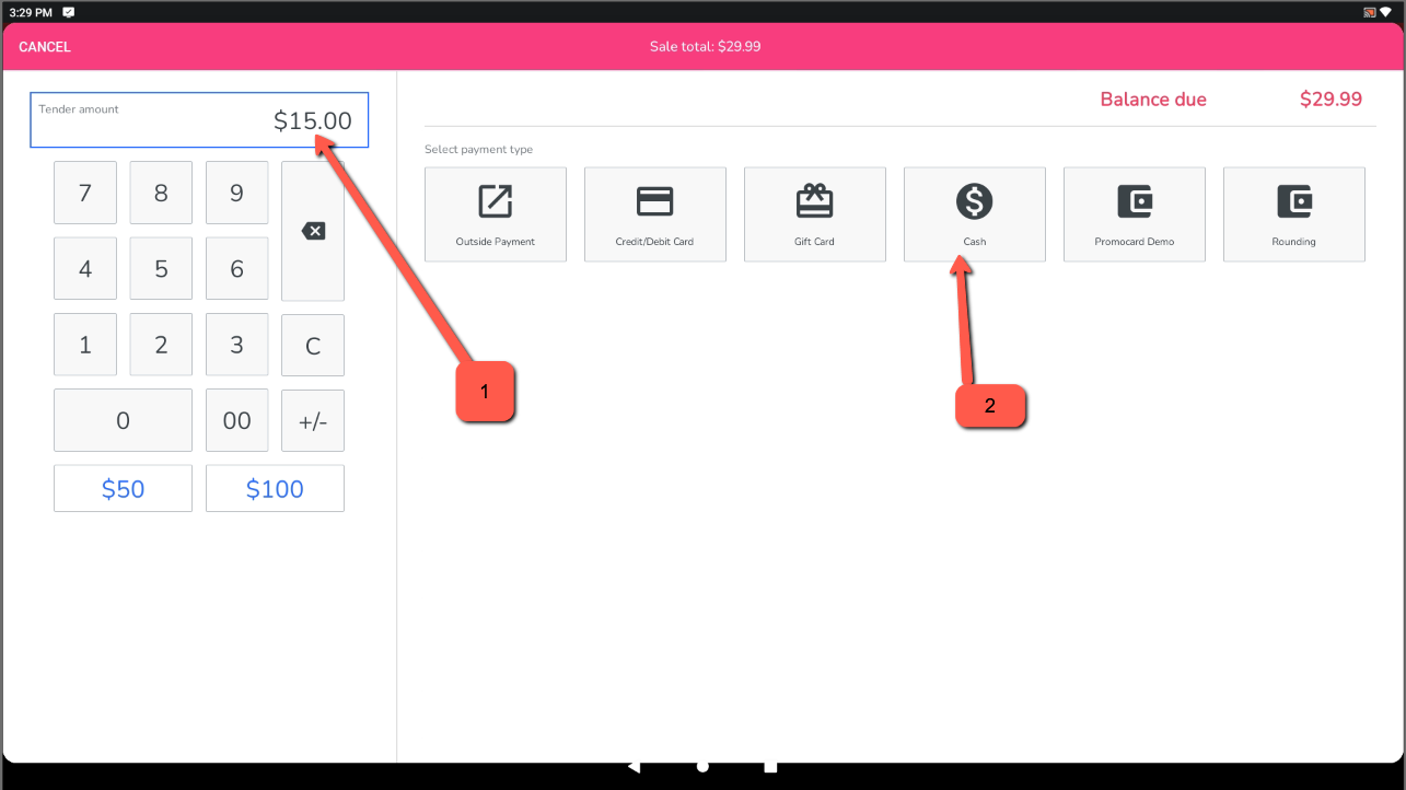 Please type in the Tender Amount using the key pad and then select the Payment method customer wants to use.
